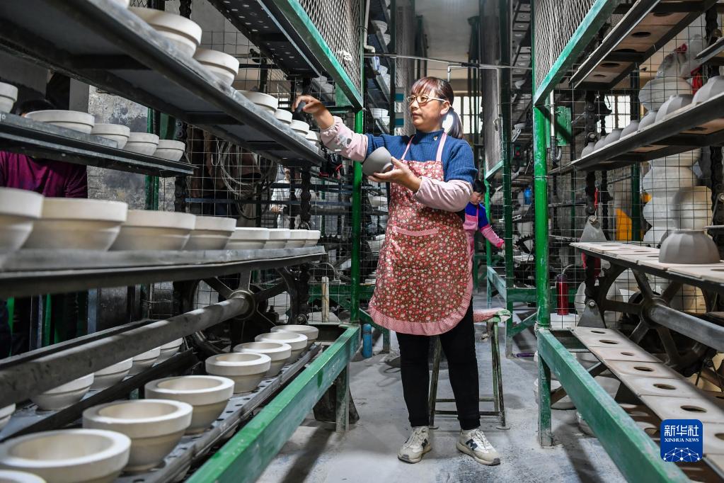 3月22日,在山西省陽(yáng)城縣沙坡村,喬氏琺華日用瓷器生產(chǎn)車(chē)間的工人在忙碌。新華社記者 曹陽(yáng) 攝