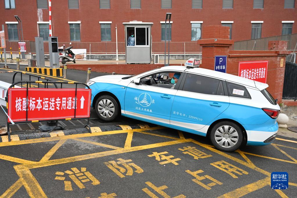 3月24日,在泉州市豐澤區,出租車(chē)司機胡金生把核酸檢測樣本運送到福建醫科大學(xué)附屬第二醫院東海院區。
