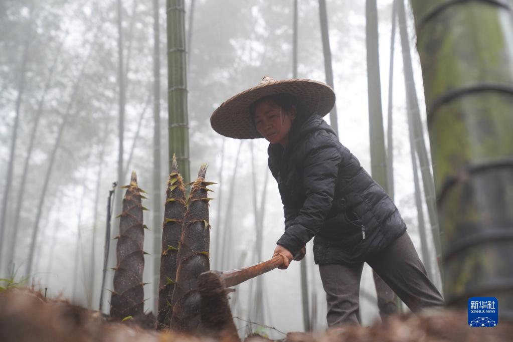 3月26日,貴州省赤水市寶源鄉回龍村村民在采挖竹筍。