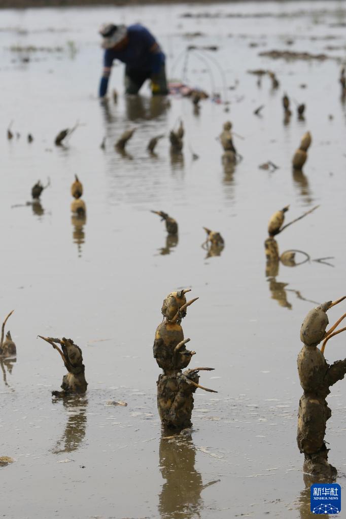 3月26日,在云南省曲靖市沾益區金龍街道,村民在種植蓮藕。