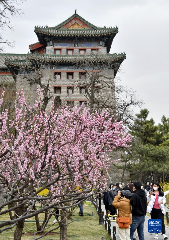 近期,北京市明城墻遺址公園內桃花盛開(kāi),吸引大批市民前來(lái)賞花踏青。