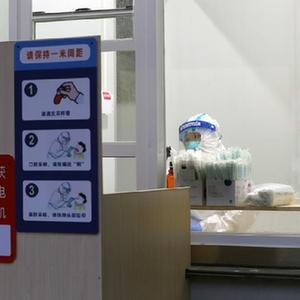 3月31日晚,檢測人員在上海市閔行區中心醫院的核酸采樣點(diǎn)進(jìn)行準備。
