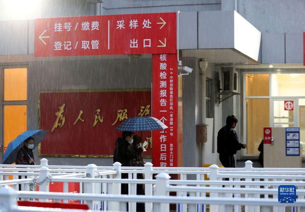 3月31日晚,市民來(lái)到上海市閔行區中心醫院的核酸采樣點(diǎn)進(jìn)行檢測。