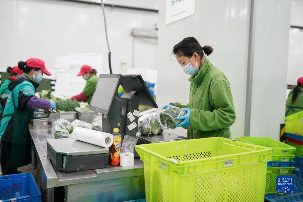 4月1日凌晨,工作人員在位于上海松江區的叮咚買(mǎi)菜蔬果大倉內忙碌。