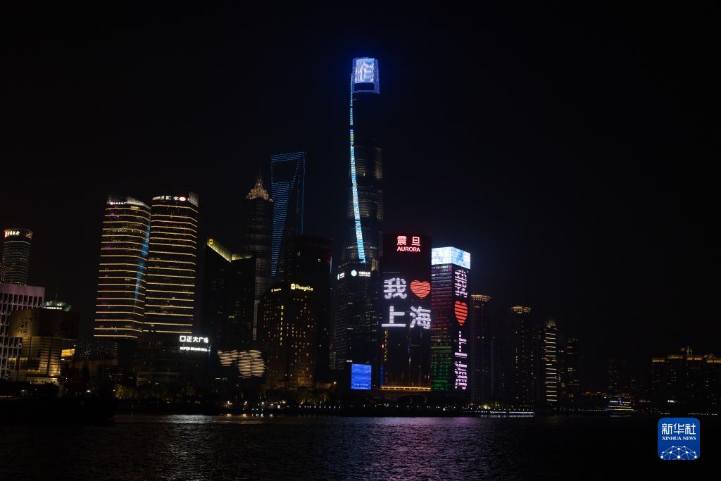 3月31日晚,上海外灘的大屏上顯示出“我愛(ài)上?!钡臉苏Z(yǔ)。