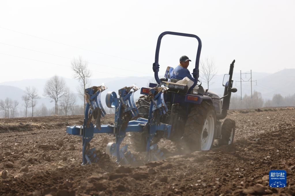 在青海省西寧市大通回族土族自治縣景陽(yáng)鎮山城村,村民姜有盛駕駛拖拉機翻整土地(3月24日攝)。