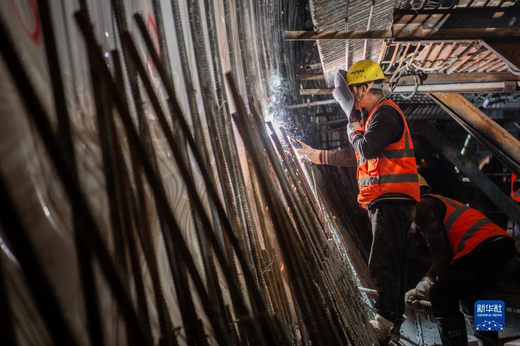 4月1日,工人在武漢地鐵前川線(xiàn)工程現場(chǎng)進(jìn)行電焊作業(yè)。