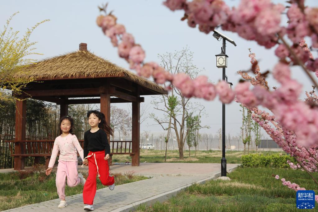 4月4日,小朋友們在河南省焦作市溫縣黃河灘區一處景點(diǎn)玩耍。