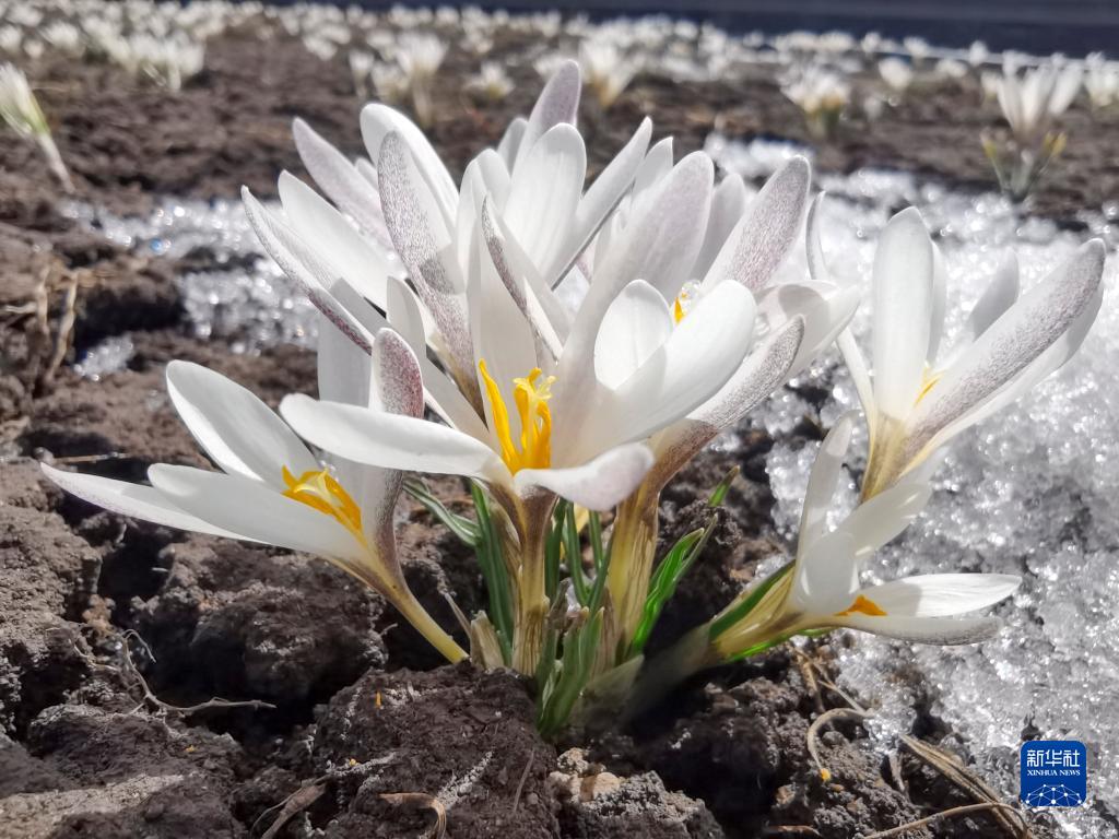 進(jìn)入4月,位于新疆伊犁河谷上的昭蘇草原積雪逐漸開(kāi)始消融,頂冰花在涓涓雪水的滋養下悄然綻放。