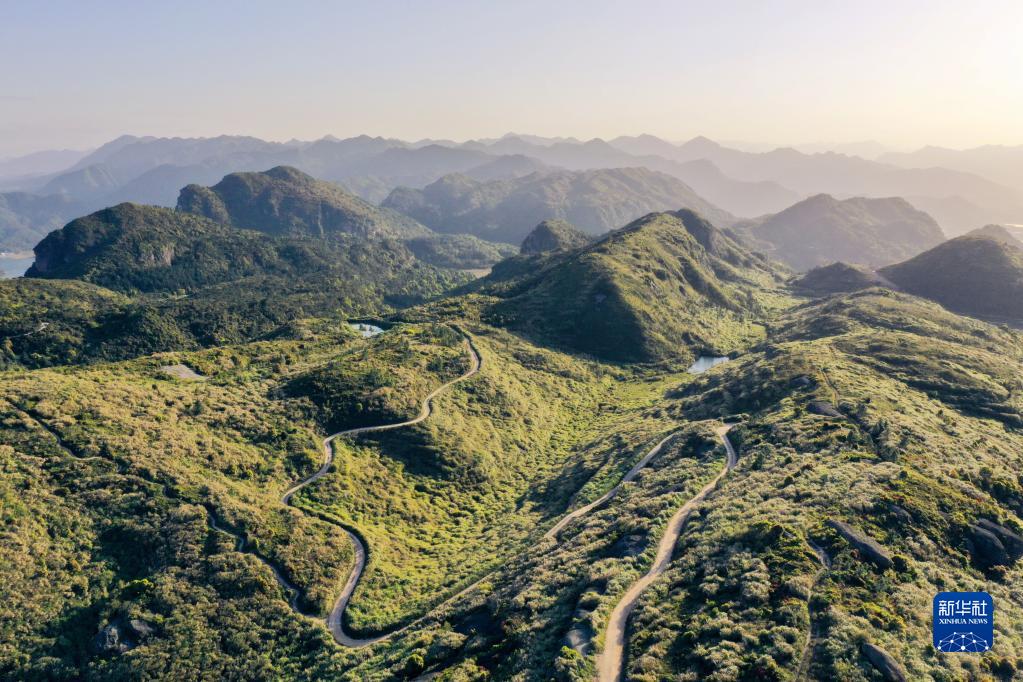 4月8日拍攝的五虎山國家森林公園風(fēng)景(無(wú)人機照片)。