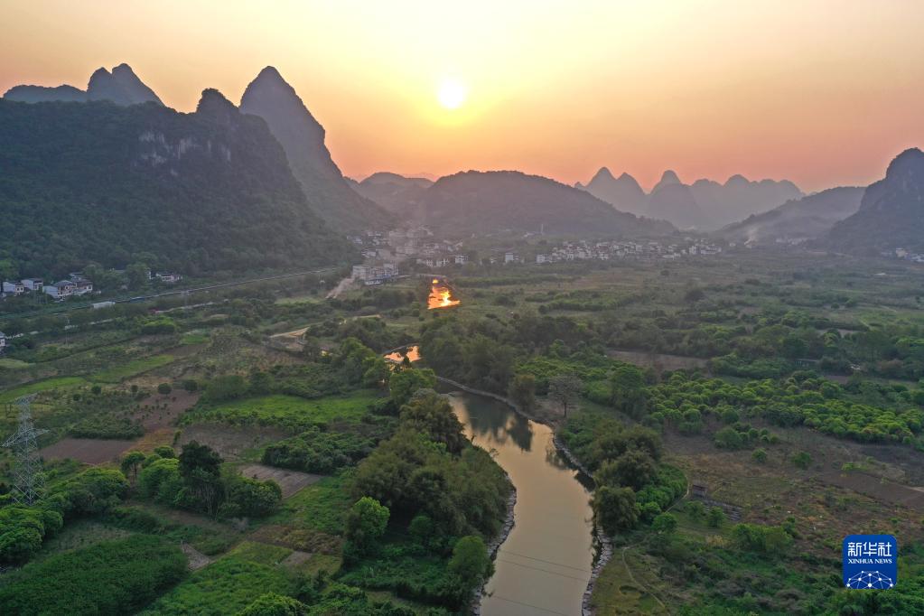 這是廣西陽(yáng)朔遇龍河沿岸景色(4月11日攝,無(wú)人機照片)。