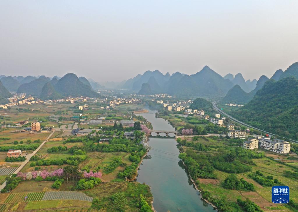 這是廣西陽(yáng)朔遇龍河沿岸景色(4月11日攝,無(wú)人機照片)。