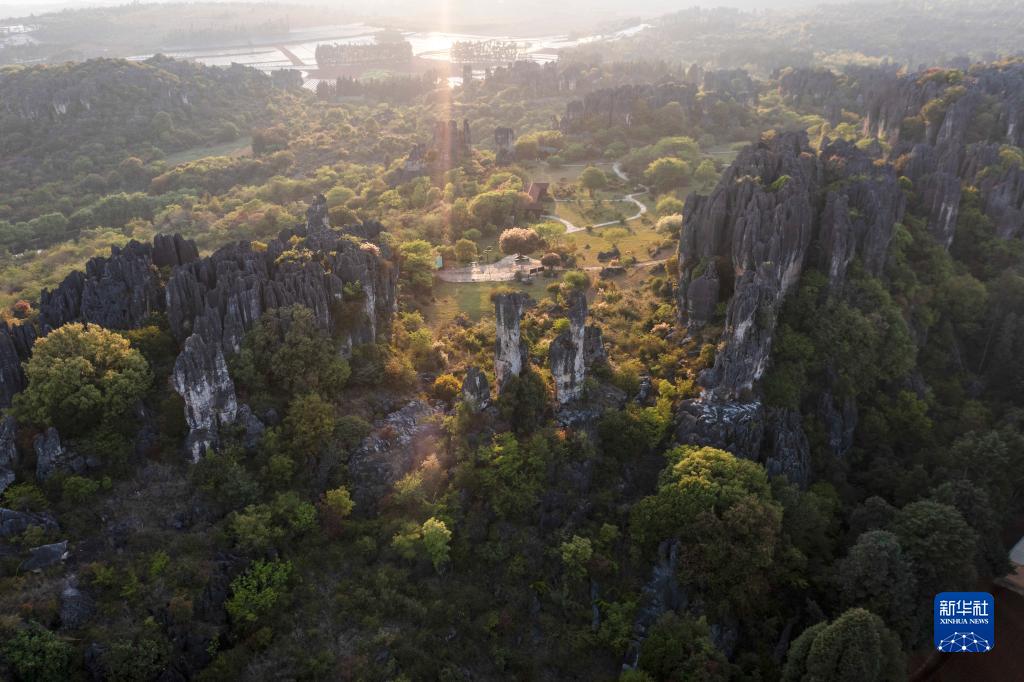 這是4月10日拍攝的乃古石林(無(wú)人機照片)。