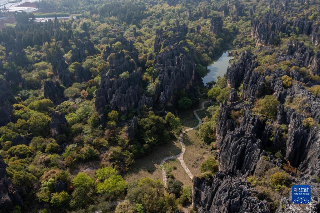 這是4月10日拍攝的乃古石林(無(wú)人機照片)。