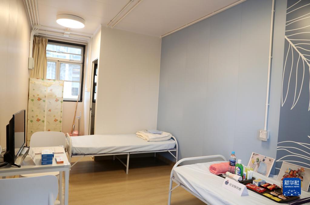 中央援建香港的竹篙灣社區隔離治療設施中的一個(gè)房間(4月19日攝)。新華社記者 李鋼 攝