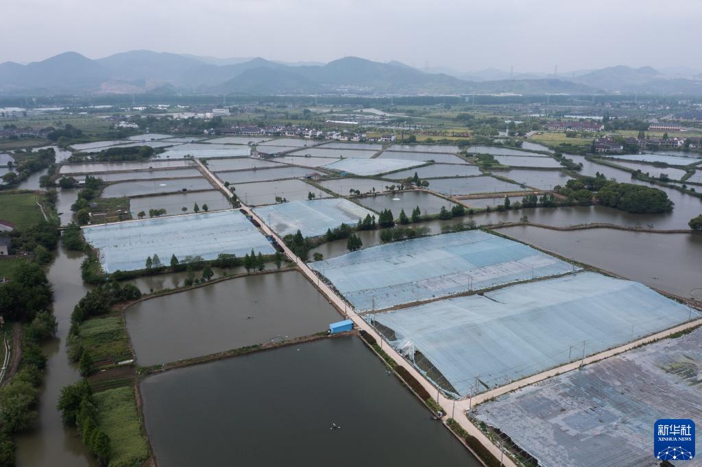 4月27日,空中俯瞰湖州市吳興區東林鎮保健村湖旺水產(chǎn)基地(無(wú)人機拍攝)。