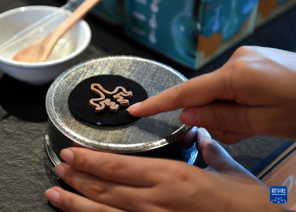 5月17日,工作人員在河南博物院文創(chuàng )商店內講解制香盲盒的制作方法。