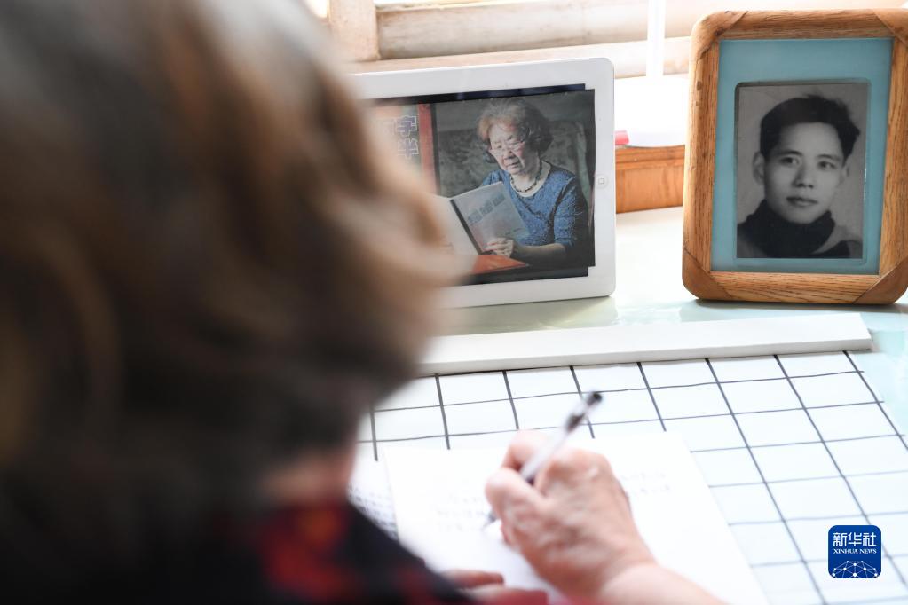 張愛(ài)蘭將自己和愛(ài)人徐國誠的照片一起擺放在書(shū)桌上(5月17日攝)。