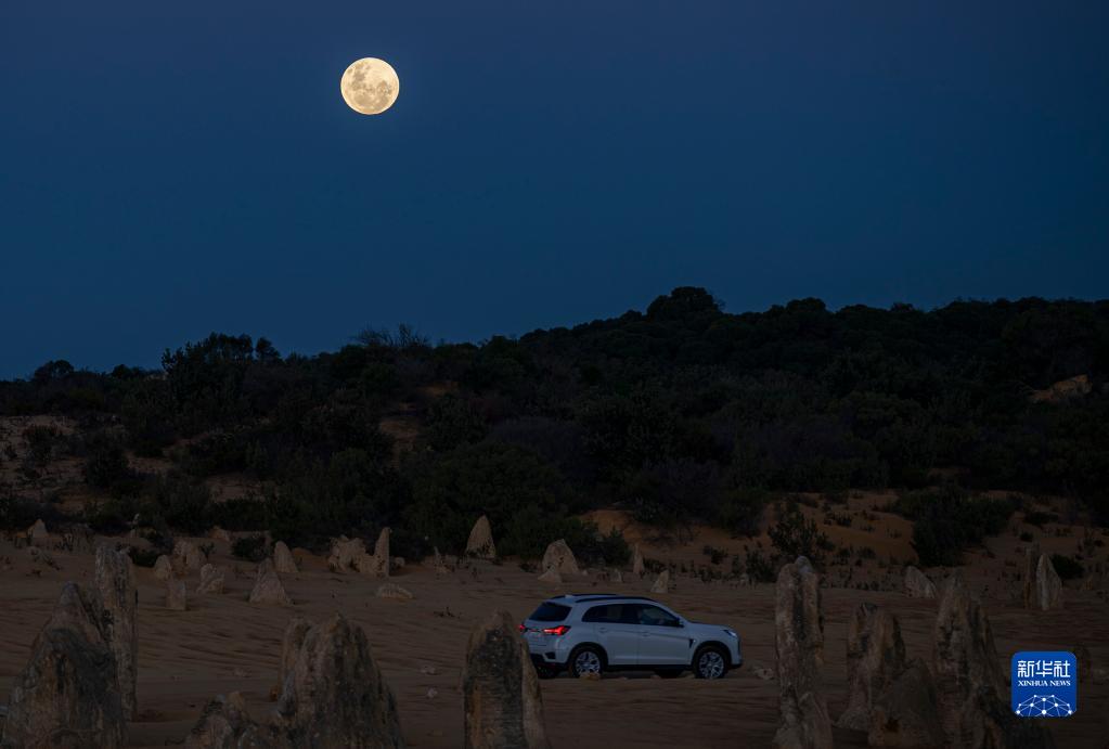 這是6月14日在位于澳大利亞西澳大利亞州的尖峰石陣拍攝的“超級月亮”。
