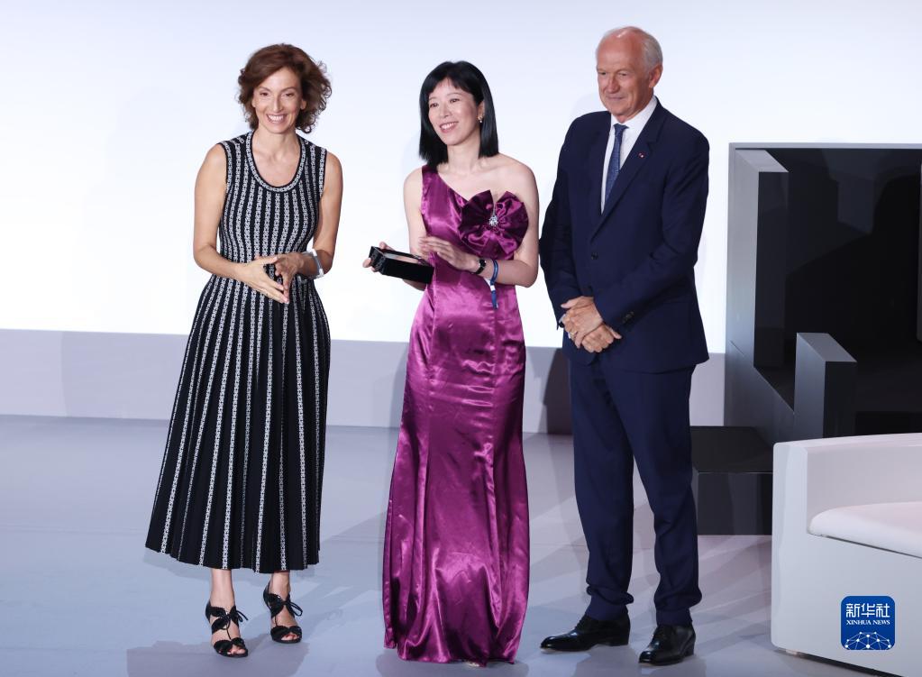6月23日,在位于法國巴黎的聯(lián)合國教科文總部,胡海嵐(中)獲頒“世界杰出女科學(xué)家獎”。