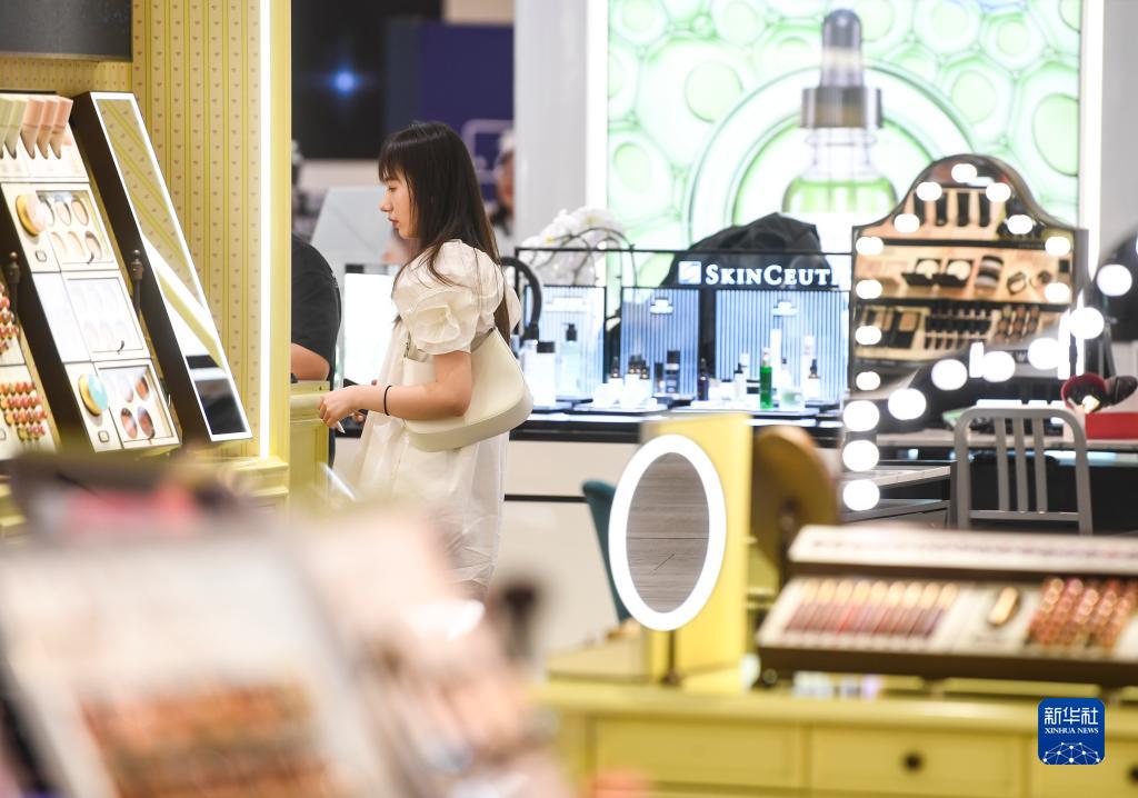 7月3日,消費者在重慶觀(guān)音橋商圈一商場(chǎng)內選購化妝品。