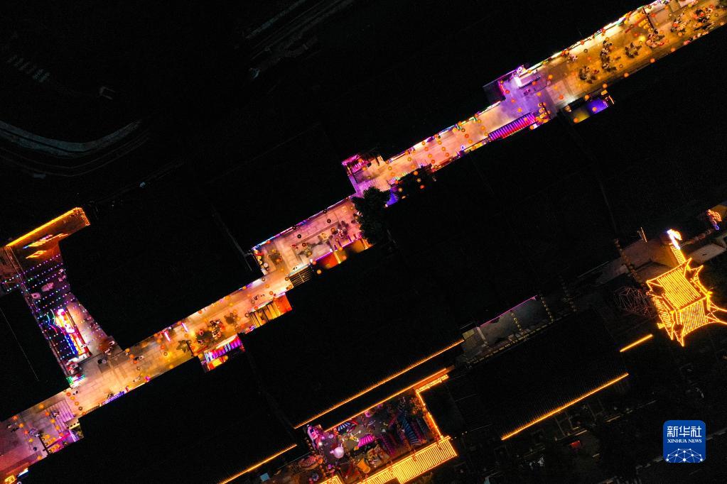 游客在重慶陶然居大觀(guān)園新國潮坊游覽、體驗(6月1日攝,無(wú)人機照片)。
