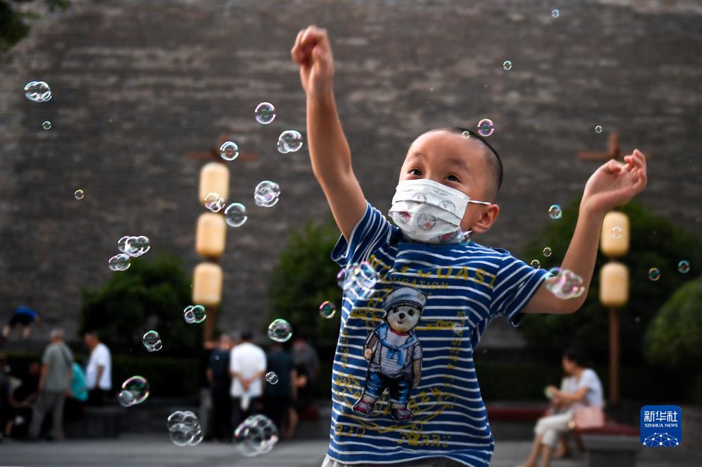 7月6日傍晚時(shí)分,小朋友在西安環(huán)城公園玩耍。