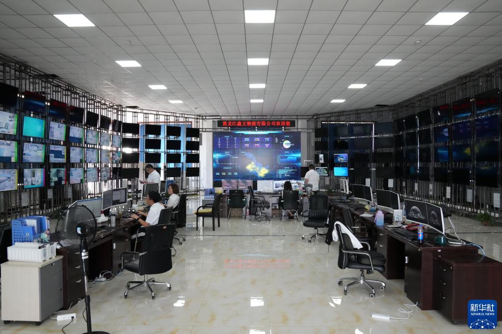 7月6日,在VC·產(chǎn)業(yè)園入駐企業(yè)黑龍江鑫文物流有限公司機房?jì)?,工作人員在作業(yè)中。新華社記者 王建威 攝