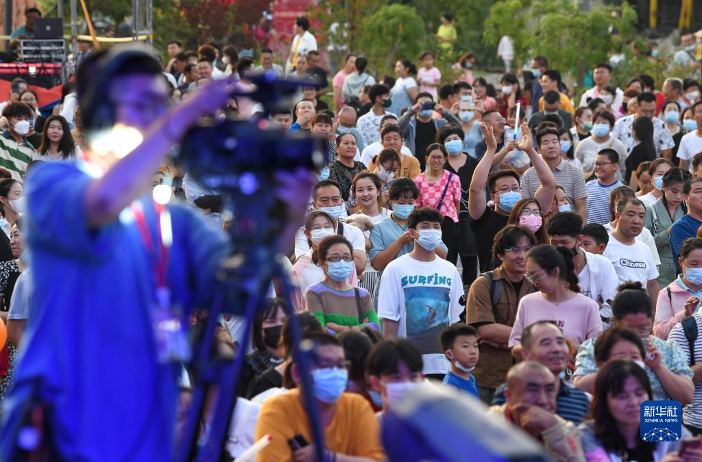 游客在大武口洗煤廠(chǎng)工業(yè)遺址公園觀(guān)看“工業(yè)之聲”音樂(lè )節演出(7月9日攝)。