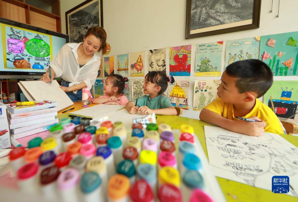 7月17日,學(xué)生在貴州省岑鞏縣一家美術(shù)培訓學(xué)校學(xué)畫(huà)畫(huà)。