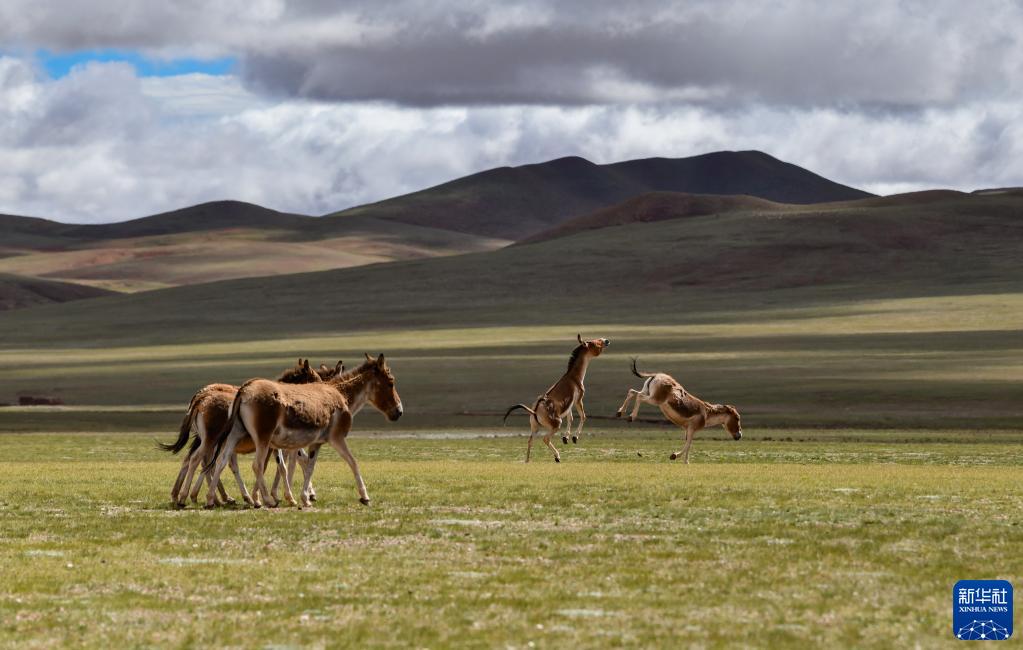 在雙湖縣境內拍攝的藏野驢(7月16日攝)。