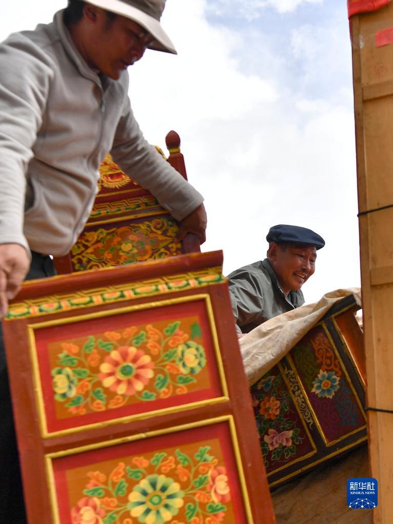 雙湖縣多瑪鄉果根擦曲村村民將家具裝車(chē),準備搬遷(7月12日攝)。