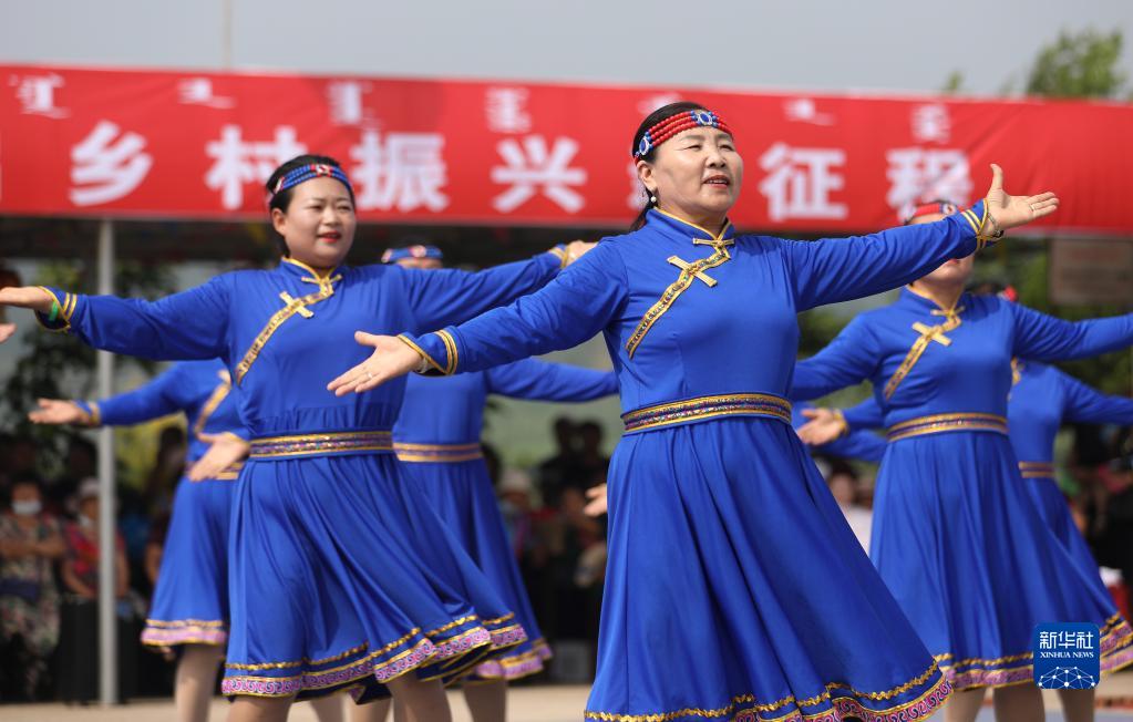 7月26日,查干哈達村村民在睦鄰節上表演舞蹈。