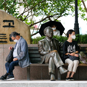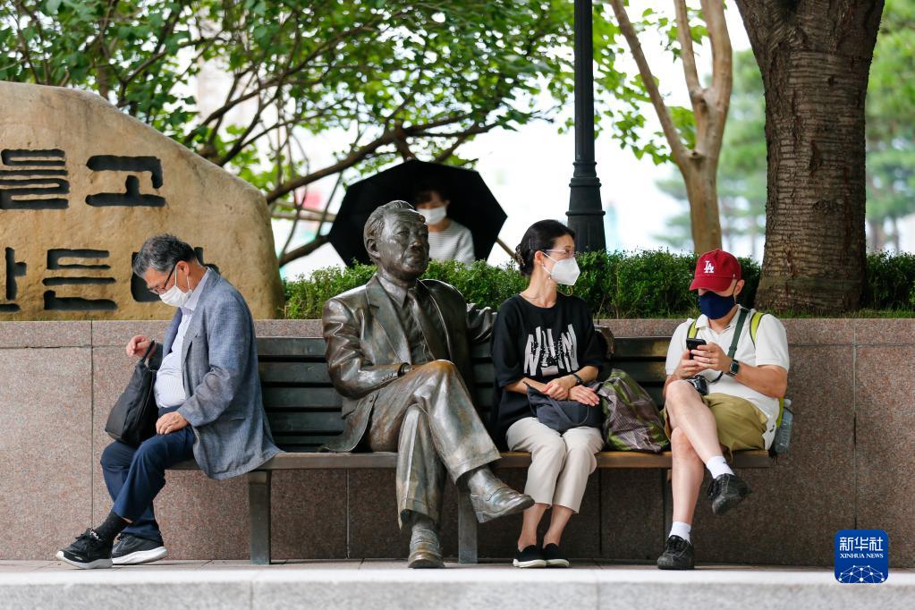 8月3日,人們佩戴口罩在韓國首爾一處公園休息。