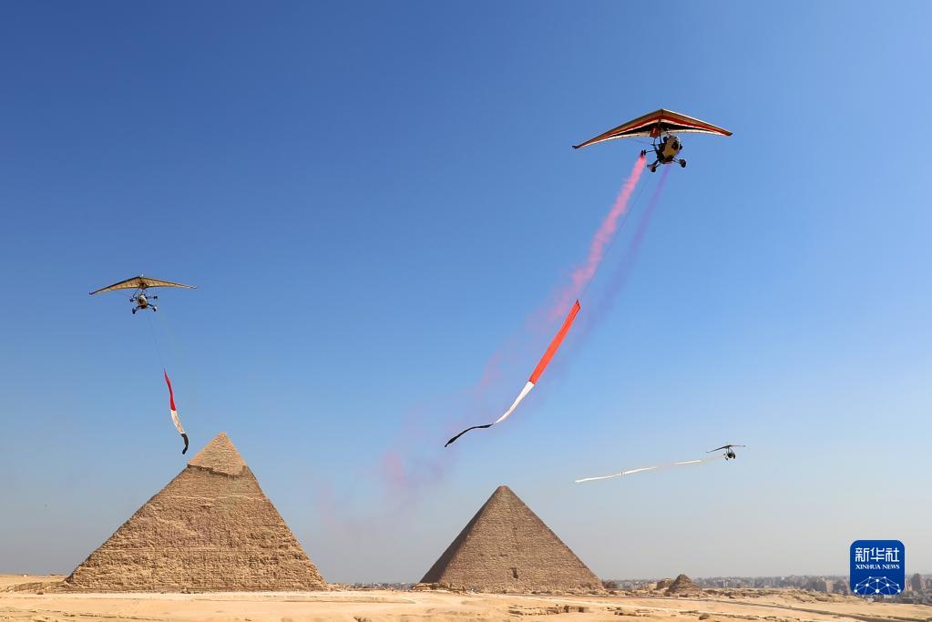 當日,埃及2022金字塔航空表演在吉薩金字塔景區舉行,來(lái)自埃及和韓國的多個(gè)飛行表演隊伍進(jìn)行了多項精彩的飛行表演。