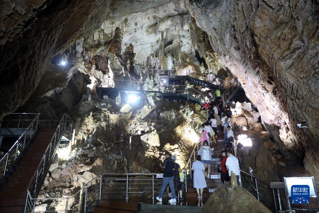 8月3日,游客在興隆溶洞內參觀(guān)游玩。