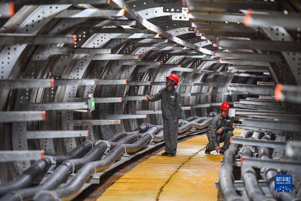 8月4日,在長(cháng)沙市萬(wàn)家麗路電力隧道內,工作人員在檢查電纜。