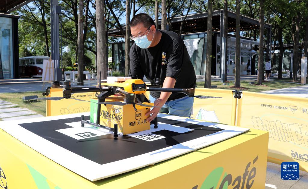 當日,一場(chǎng)無(wú)人機送咖啡體驗活動(dòng)在上海世博文化公園露營(yíng)區舉行,這是上??Х任幕艿呐涮谆顒?dòng)。在為期4天的體驗活動(dòng)期內,市民可以在世博文化公園指定區域內通過(guò)手機下單選擇無(wú)人機咖啡配送服務(wù)。