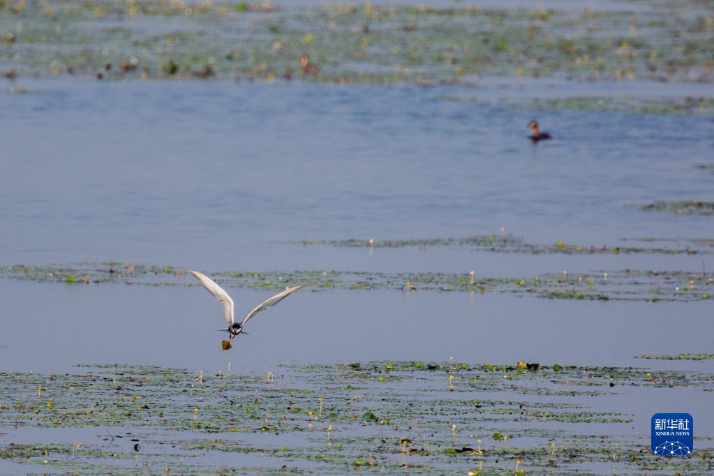 近期,眾多候鳥(niǎo)在湖北省武漢市沉湖生態(tài)自然保護區筑巢繁衍。候鳥(niǎo)或迎風(fēng)翱翔,或覓食嬉戲,為這里增添了勃勃生機。