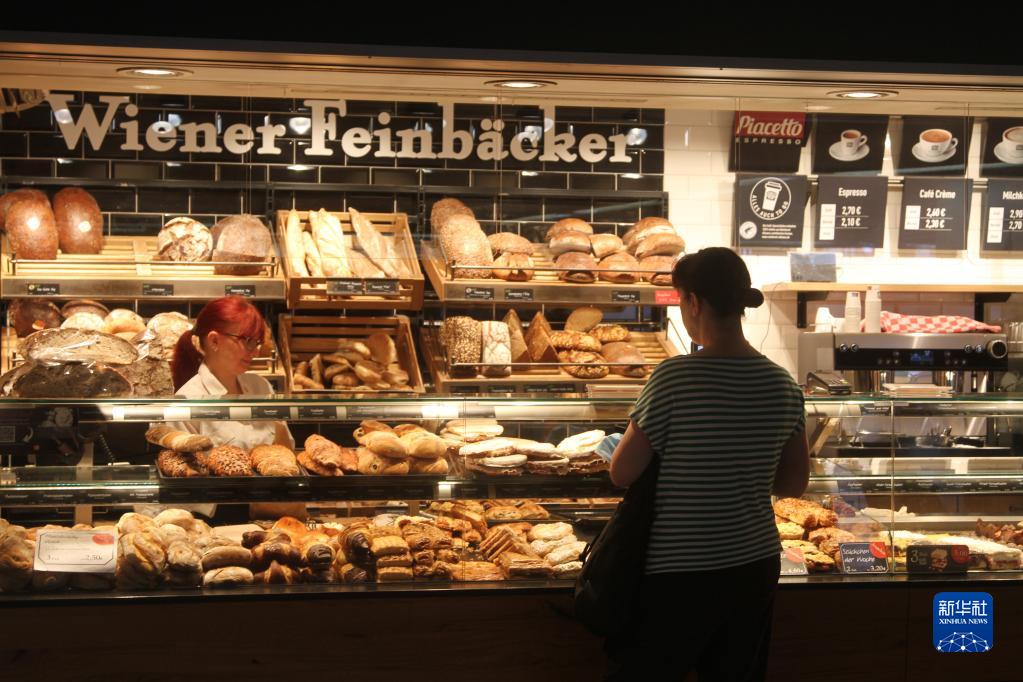 8月2日,顧客在德國法蘭克福的一家面包店購買(mǎi)食品。