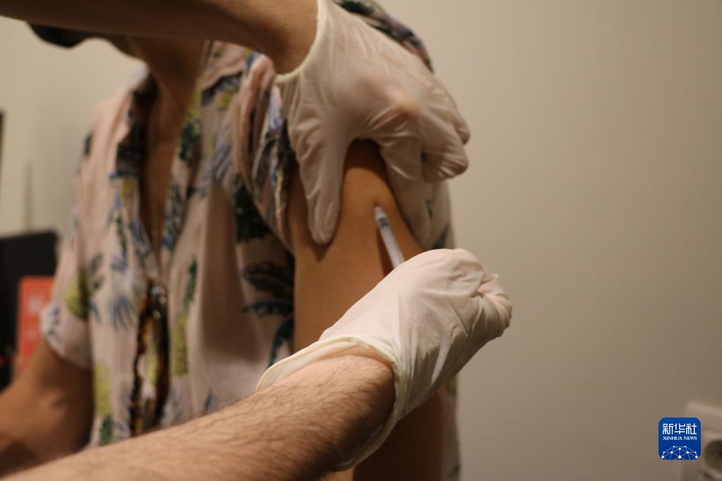 8月3日,一名男子在西班牙巴塞羅那一家診所內接種猴痘疫苗。