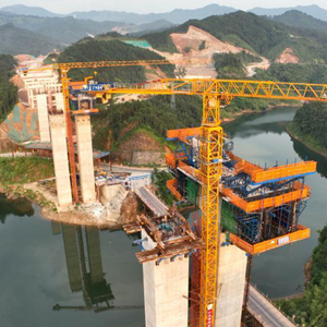 8月3日傍晚,融安至從江高速公路一期工程融水段,工人在橋墩上施工(無(wú)人機照片)。