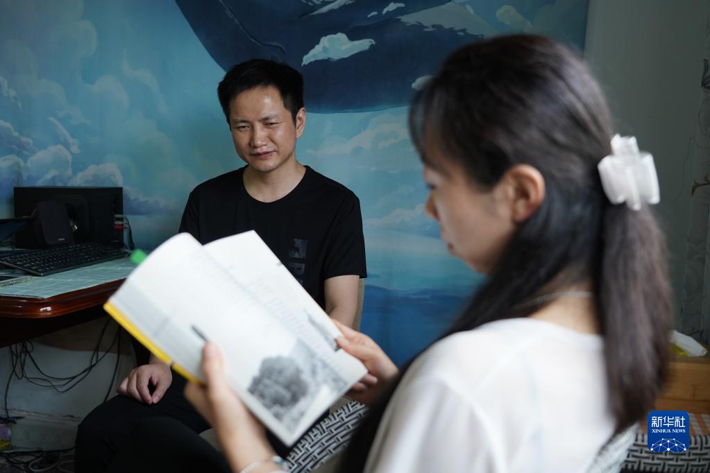 在四川省什邡市馬井鎮同心村,宇曉為王忠禮讀書(shū)(8月2日攝)。