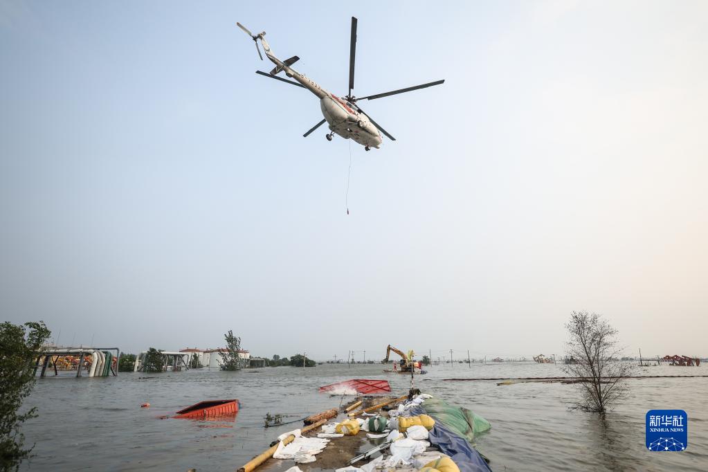 8月1日,遼寧省盤(pán)錦市繞陽(yáng)河左岸曙四聯(lián)段一處堤壩發(fā)生潰口。8月3日,潰口長(cháng)度發(fā)展至50余米。經(jīng)過(guò)各方搶險力量連日來(lái)加緊施工,搶險工作穩步推進(jìn)。4日,搶險人員開(kāi)始對潰口進(jìn)行直升機吊裝投放六角沉箱作業(yè)。