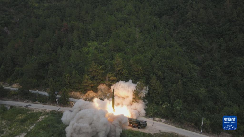 8月4日,東部戰區火箭軍對臺島東部外海預定海域實(shí)施火力突擊。這是導彈點(diǎn)火發(fā)射。