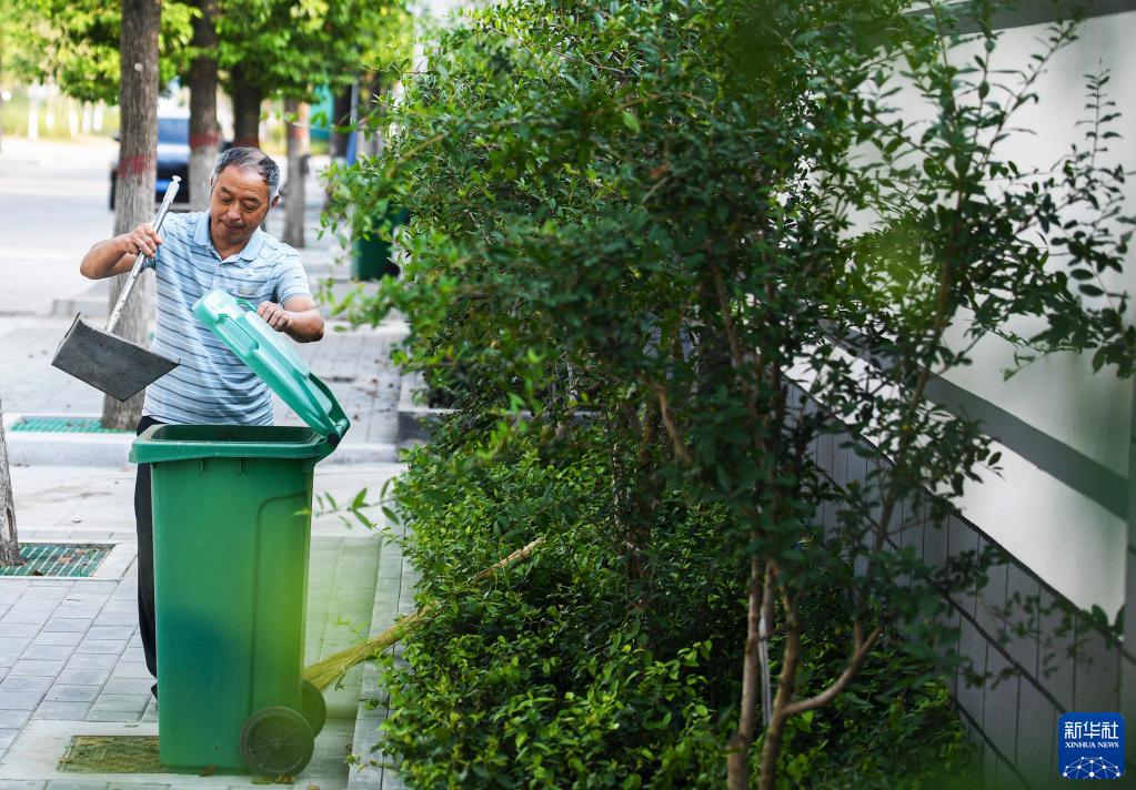 8月4日,河南省南陽(yáng)市淅川縣九重鎮鄒莊村村民在清掃街道。
