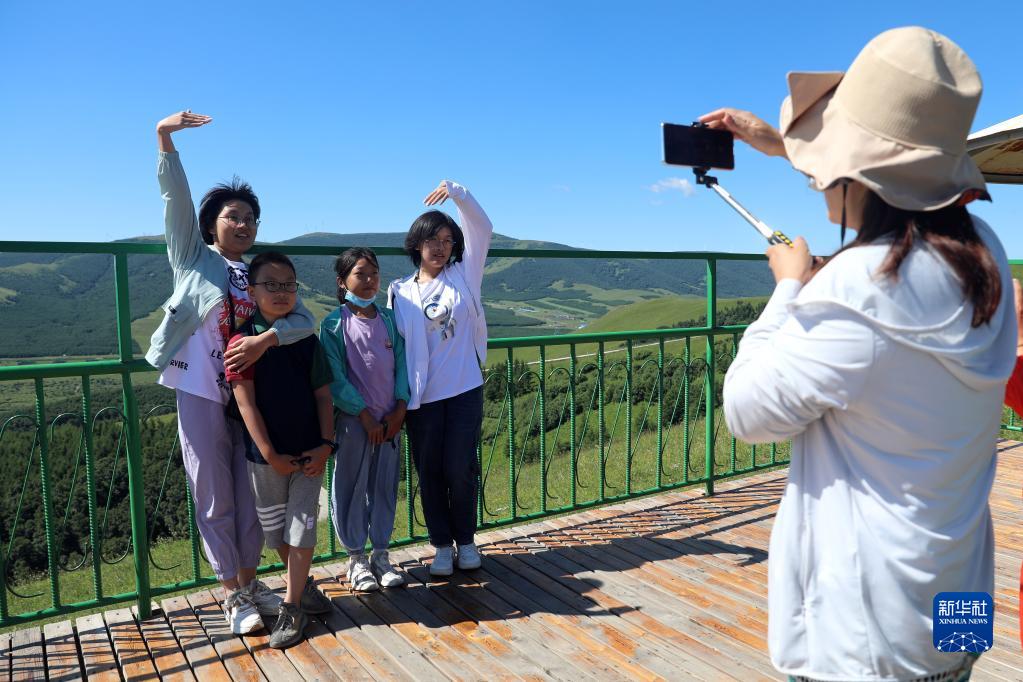 8月5日,游客在豐寧滿(mǎn)族自治縣千松壩森林公園景區拍照游玩。