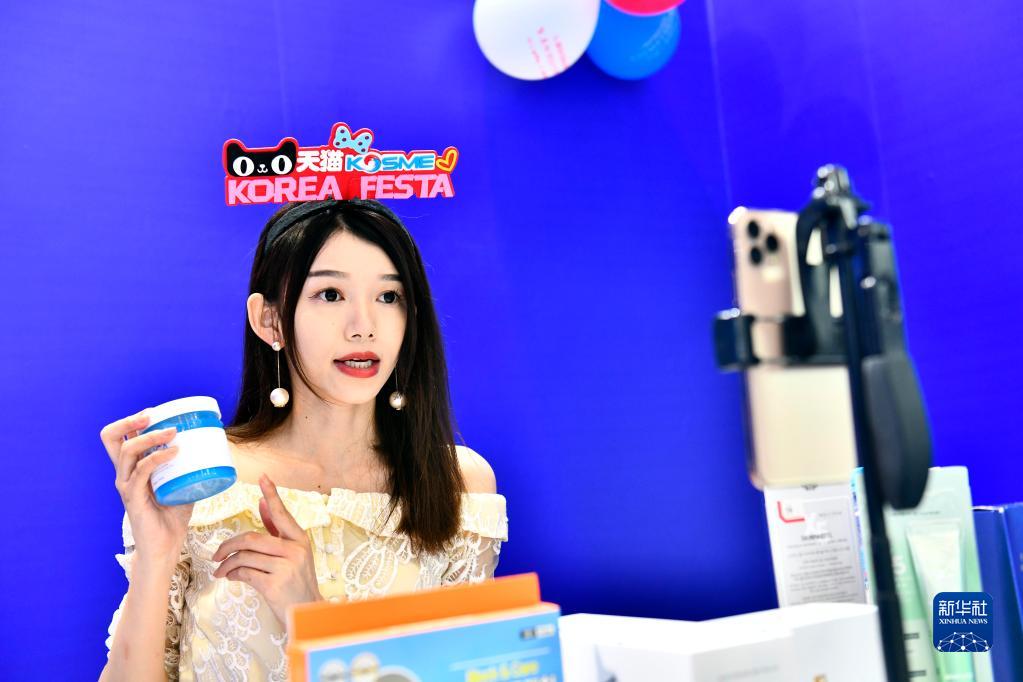 8月5日,在山東省威海市,主播在第二屆韓國(山東)進(jìn)口商品博覽會(huì )上直播帶貨。