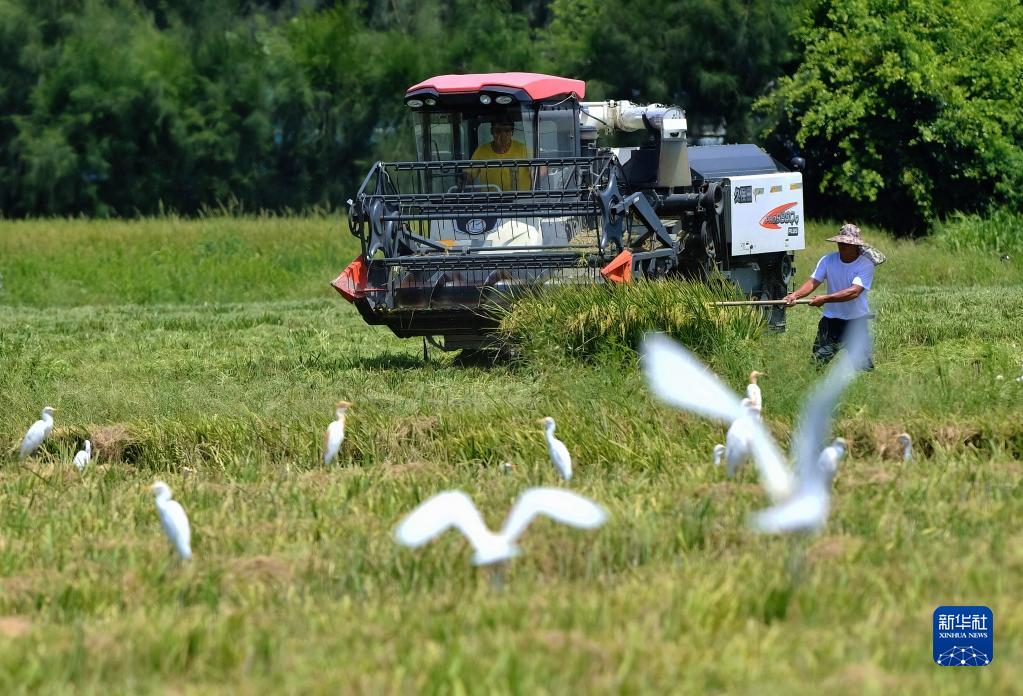 新華全媒+|大地“調色盤(pán)” 稻田夏收忙