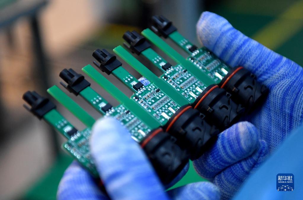 西安正昌電子股份有限公司的工作人員在進(jìn)行里程表傳感器測試(8月4日攝)。